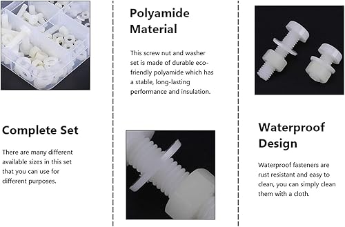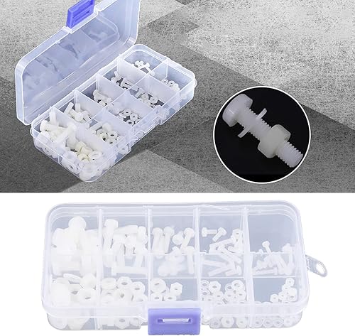 Viti Bulloni Dadi Rondelle Kit, 150 pezzi M2 M2,5 M3 M4 M5 Viti in Nylon Bulloni Dadi Rondelle Assortimento Kit di Fissaggio con Scatola