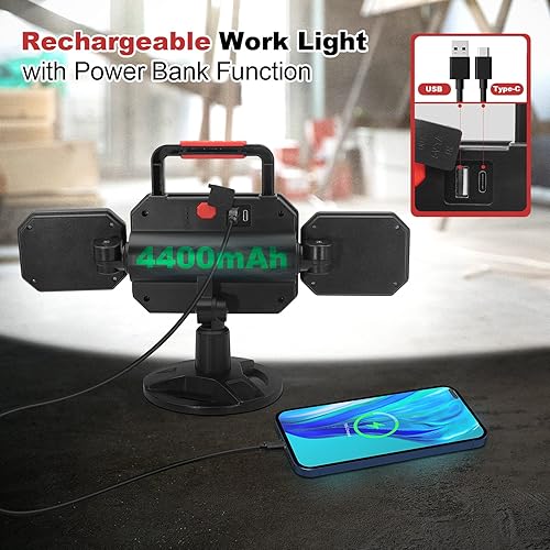 Faro Led Ricaricabile, Luce Led Ricaricabile COB, 25W 2700LM con Magnete e Power Bank Funzione, Lampada Ricaricabile Portatile Impermeabile Ruotabile per Garage,Officina, Cantiere e Riparazione Auto