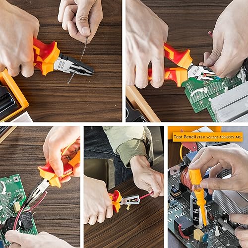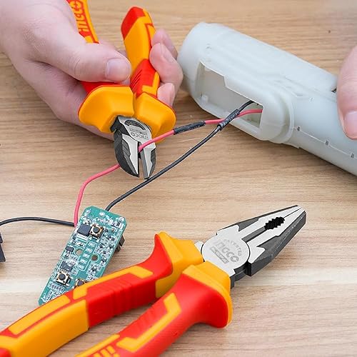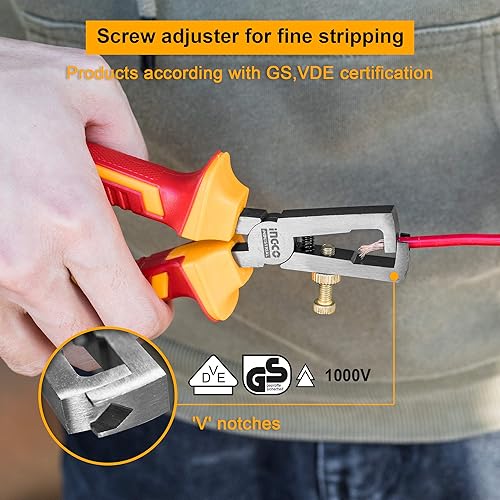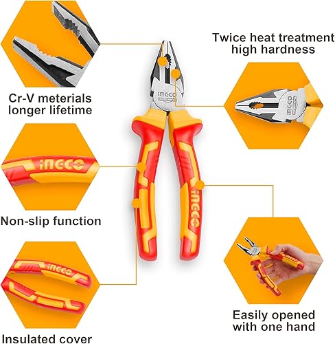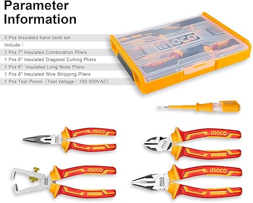 INGCO VDE - Set di 5 pinze isolate da 1000 V, pinze universali da 17,8 cm, pinze da taglio diagonale da 15,2 cm, 1 matita per test HKTV01P051