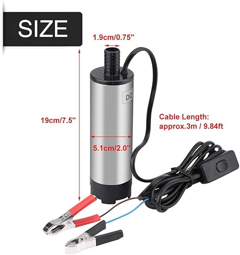 Ejoyous Pompa sommergibile 51 mm, Pompa acqua DC 12 V Autoadescante, Pompa sommergibile in Acciaio Inox 30 L/Min Pompa di Trasferimento Carburante per Auto, Caravana, Barca