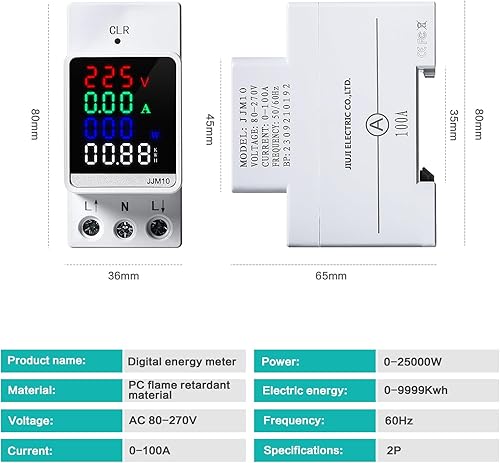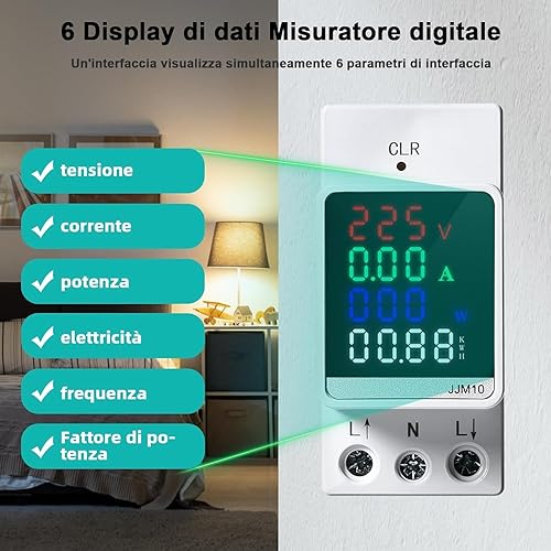 Misuratore Consumo Elettrico,100A AC80-270V Wattmetro Contascatti Elettrico Contatore Elettrico Digitale Potenza di Tensione di Corrente su Guida DIN v