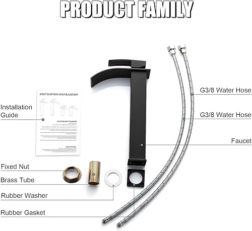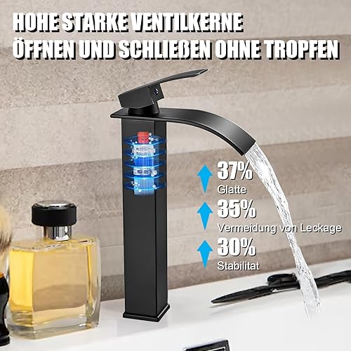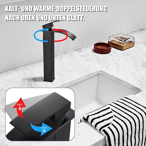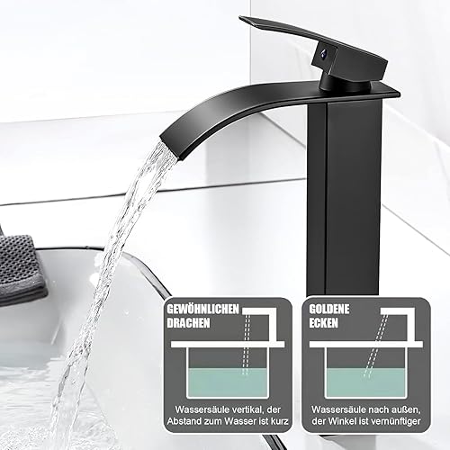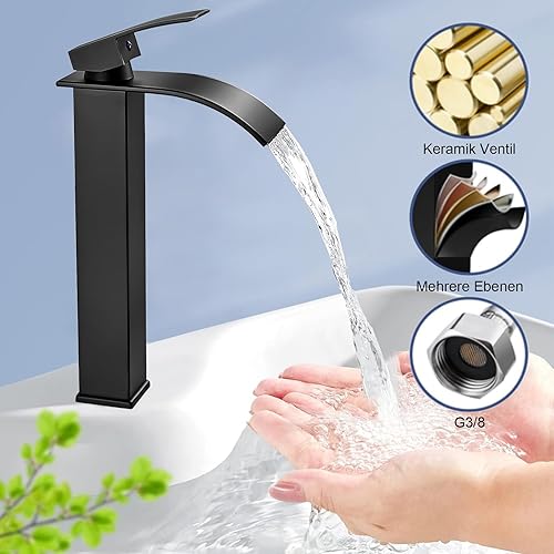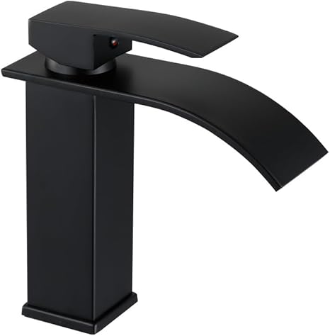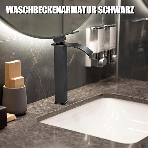 Rubinetto per bagno nero, a cascata, miscelatore monocomando per lavabo, rettangolare, per bagno con acqua calda e fredda (nero alto)