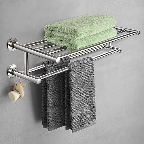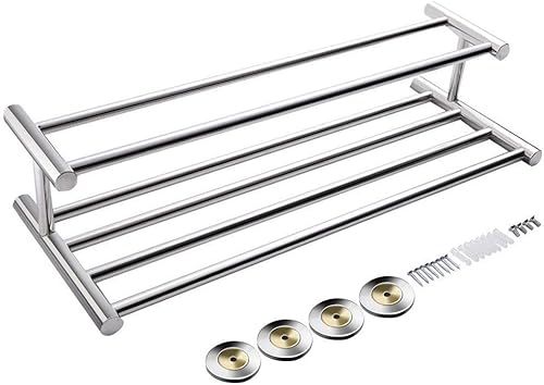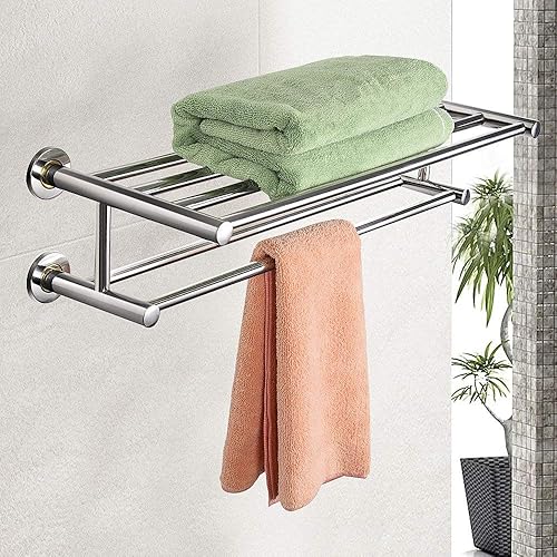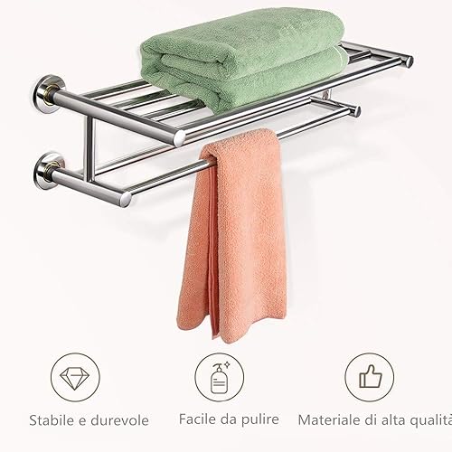 COSTWAY Portasciugamani da Bagno, Porta Asciugamani da Parete, Mensola a 2 Ripiani in Acciaio Inossidabile, Resistente alla Ruggine e alla Corrosione, 61 x 23 x 15 cm