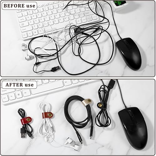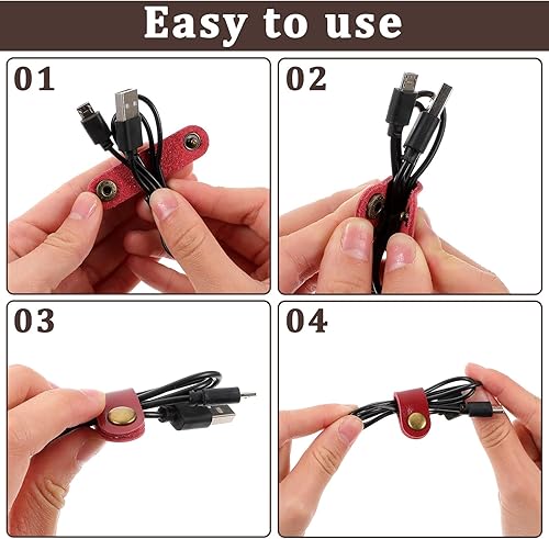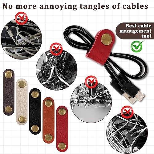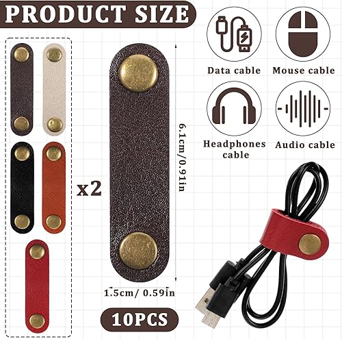 10 fascette stringicavo in pelle, per cavi elettrici, organizer per cavi di ricarica con chiusura a scatto, in pelle PU, per casa, ufficio, viaggi