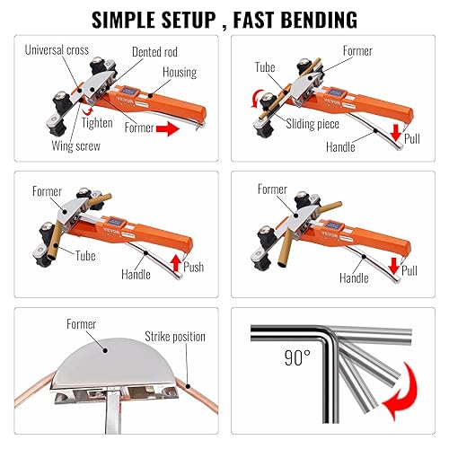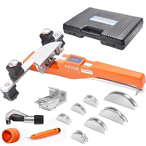 VEVOR Kit Piegatubi per Curvatura Angolazione di Piegatura 90° con 7 Matrici 1/4 a 7/8 pollici Sostituibili Fornito in Valigetta Portatile, Curvatubi a Cricchetto Pieghevole Bidirezionale a 90° 4,86kg