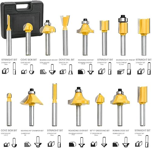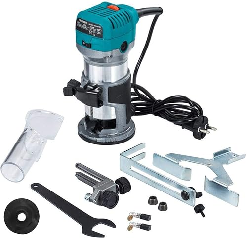 Fresa a mano per legno, fresa multifunzione, 710 W + 15 pezzi, fresa in metallo duro da 6,35 mm