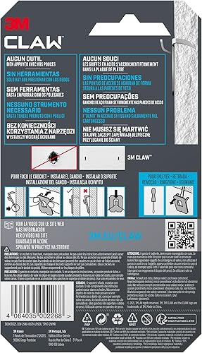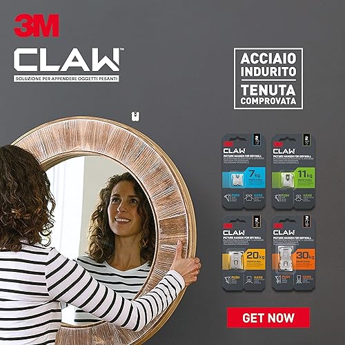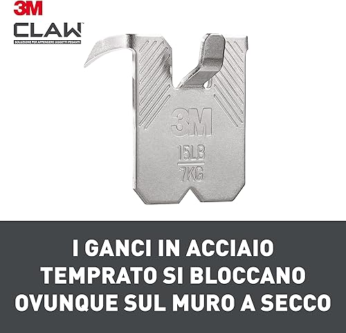 Command 3M Claw Gancio appendiquadri per cartongesso, 7 kg 3PH7-2WMR, 2 Ganci, Argento