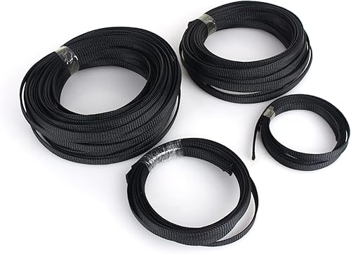 Guaina Cavo Intrecciata Manicotto Estendibile 6mm 10m PET Nero per Cavi di Domestici e per Ufficio