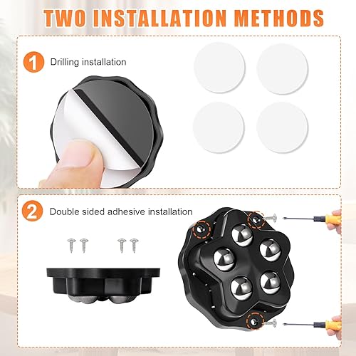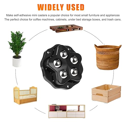 4 Pezzi Ruote per Spostare Mobili, Ruote Adesive 360 gradi Per Cestini, Armadietti, Comodini, Piccoli Frigoriferi,Capacità di Peso 240 kg, (Nero, Diametro 4.8 cm)