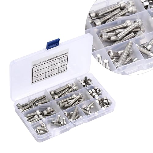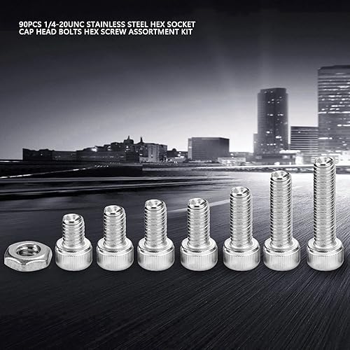 90Pezzi 1/4-20UNC Kit di Viti Bulloni a Brugola e Dadi, Viti a Macchina in Acciaio Inossidabile 304
