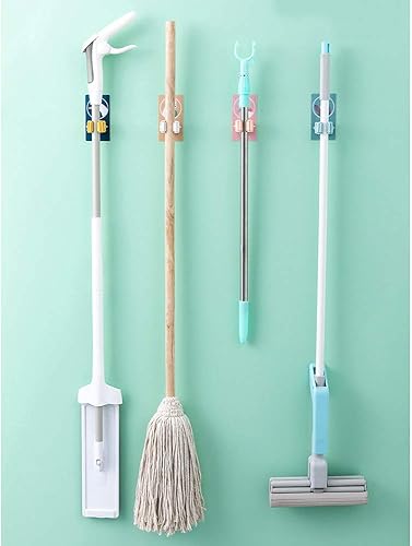 4 pezzi porta scopa con tazza di aspirazione, da cucina autoadesiva per mocio da parete, porta scopa, organizer per giardino, garage, bagno, ufficio