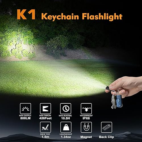 K1 Torce portachiavi,800 Lumen piccola luce piatta portatile,Mini torcia tascabile ricaricabile con clip,Compatto portachiavi LED Luci con magnete per Portare tutti giorni,campeggio,emergenza