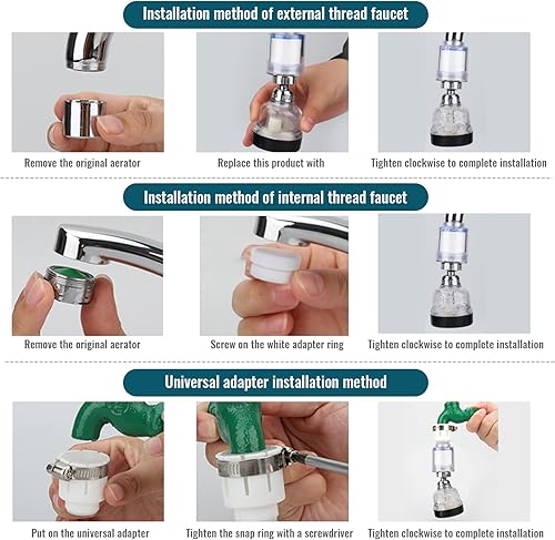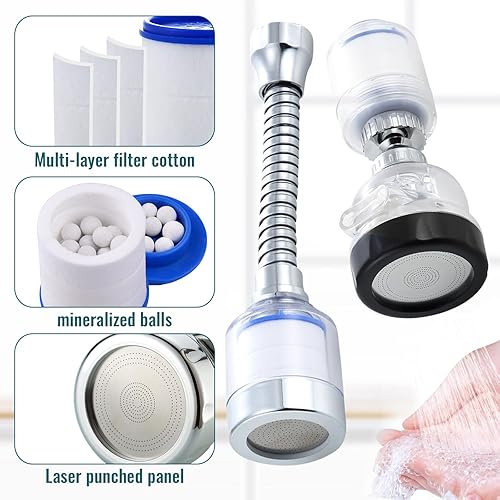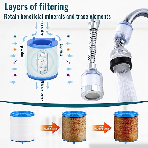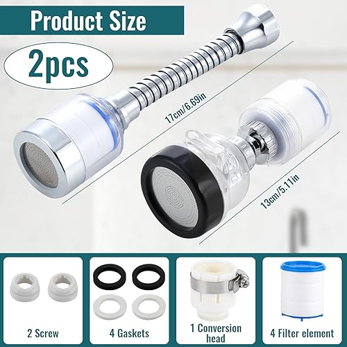 2 Pezzi Filtro Acqua Rubinetto, Filtro Anticalcare Rubinetto, Filtro Per Rubinetto, 360° Rotante Filtro Acqua Rubinetto con 4 Elemento Filtrante Sostituibile Per Lavello, Cucina, Bagno