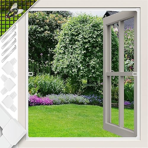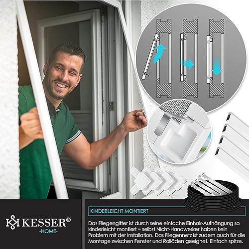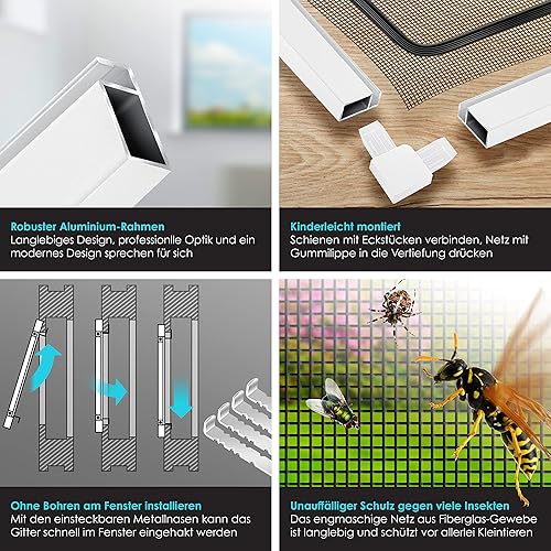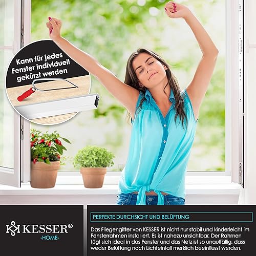 KESSER® Zanzariera per finestre con telaio in alluminio Zanzariera, Protezione dagli insetti, Zanzariera, Rete contro le zanzare, telaio di fissaggio, senza foratura e viti, 130 x 150 cm, Bianco