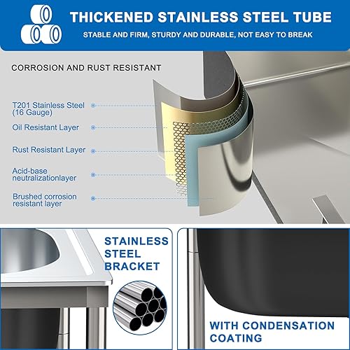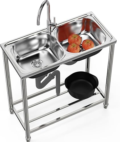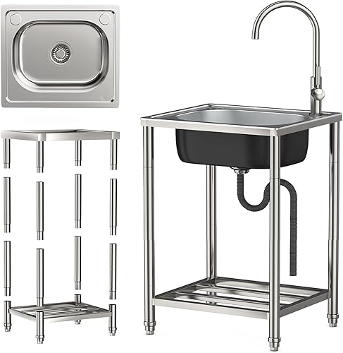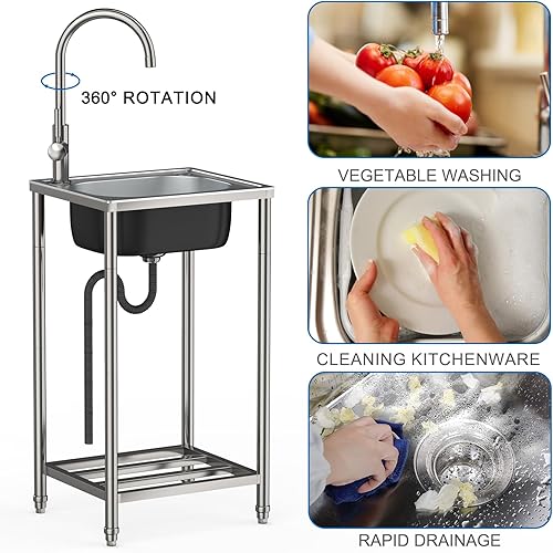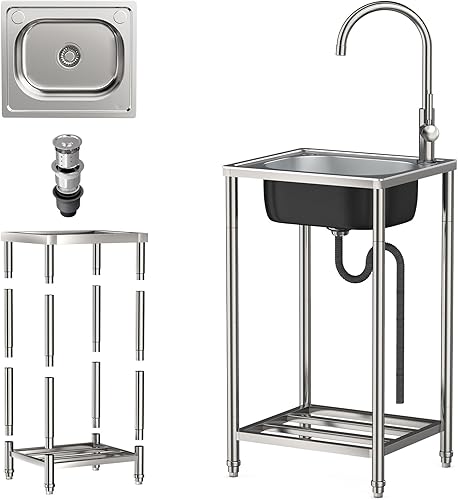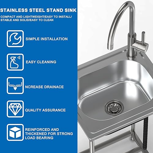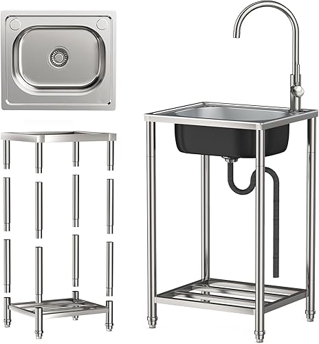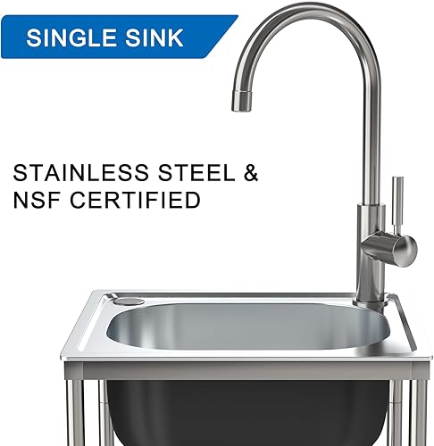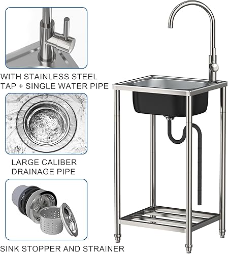 Lavello da esterno Lavello in Acciaio Inox Autoportante Lavandino Cucina 1 vasca Multifunzione con Rubinetto per Cucina, Giardino, Ristorante, Bar, Caffè, Garage (33 * 38 * 82CM)