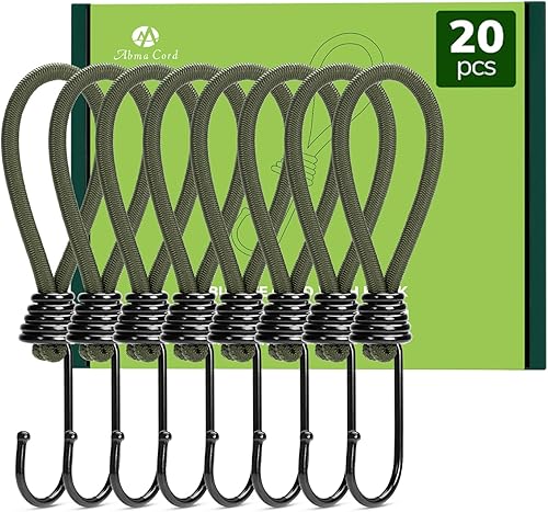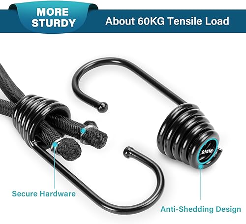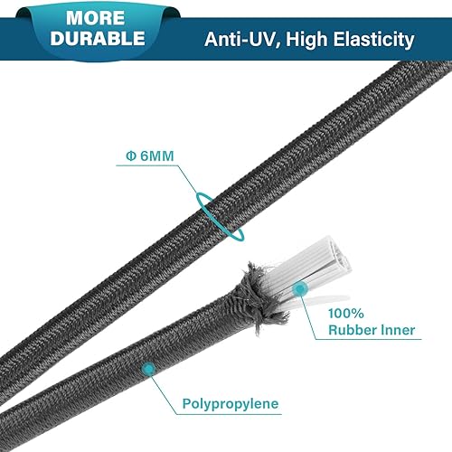 Corde Elastiche con Gancio 15 cm x 20 Pcs Corda Elastica per Teloni Elastici con Ganci per Teloni, Tende da Esterno, Campeggio - Nero
