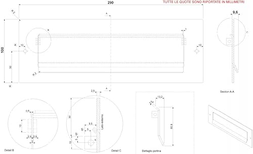 BUCA PER LETTERE BOCCHETTA FERITOIA IN ACCIAIO INOX SATINATO 240-290x100 MM