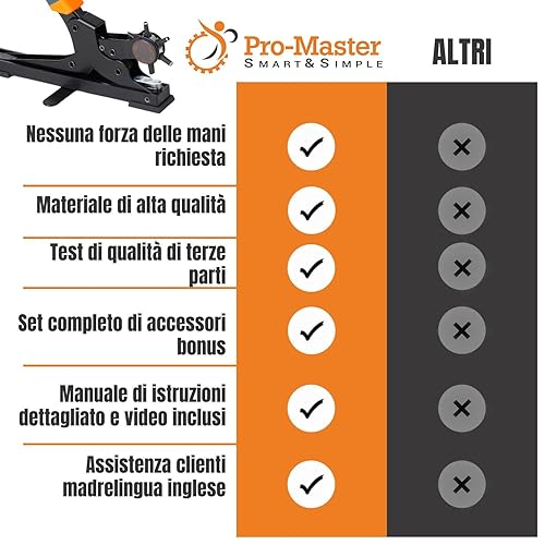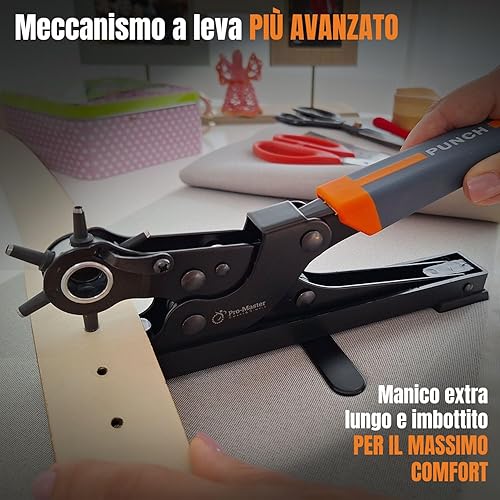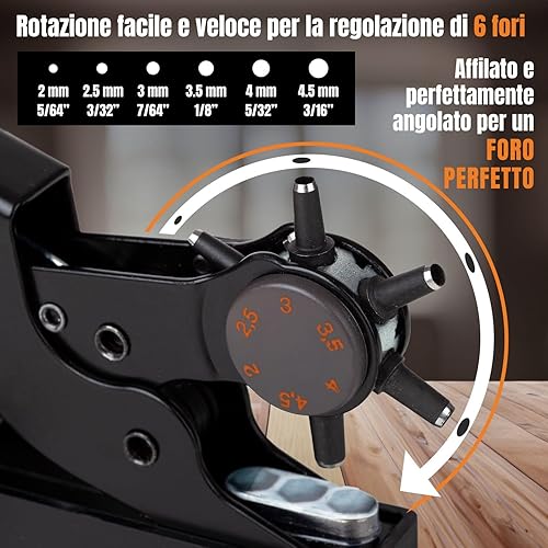 Pinza Fustellatric per Buchi Cintura, Progetti DIY Casa o Artigianali. Punzoni per Cuoio, Super Robusta Testina Rotante, Punzonatrice Fori Varie Misure
