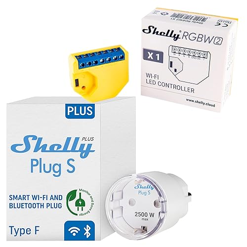 Shelly Plus Plug S + Shelly RGBW2 Presa intelligente compatibile con Alexa e Google Home, programmabile con controllo vocale, Bluetooth; dispositivo Wi-Fi per l'automazione dei dispositivi