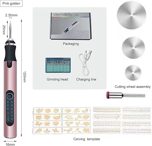 Penna per incisione elettrica, Incisore Portatile Senza Fili con 20 punte e 16 stencil, Intagliare Strumento ricaricabili USB, utensile rotanteper per Gioielli fai da te plastica legno metallo vetro