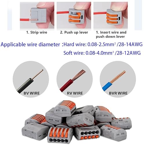 Morsetti Elettrici, CESFONJER 35 Pcs Connettori a Filo Compatto, Leva-Dado Cavo Connettore Set (15 Pcs 2 Porte/10pcs 3 Porte/6 Pcs 4 Porte/4 Pcs 5 Porte)