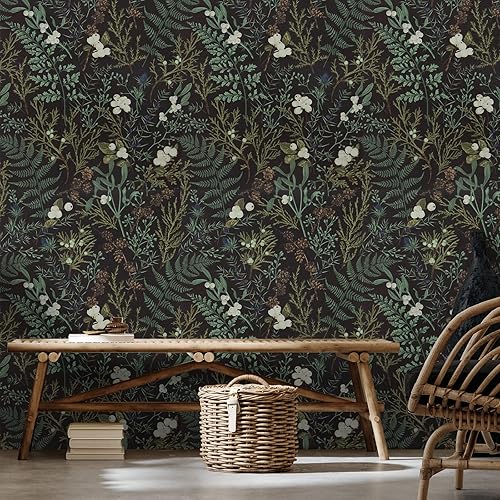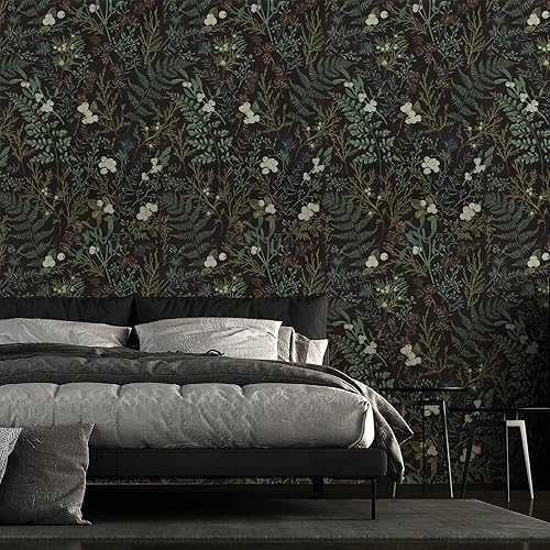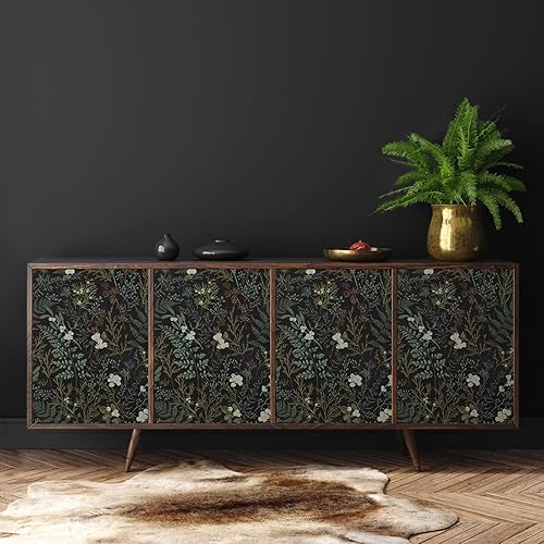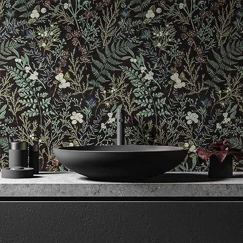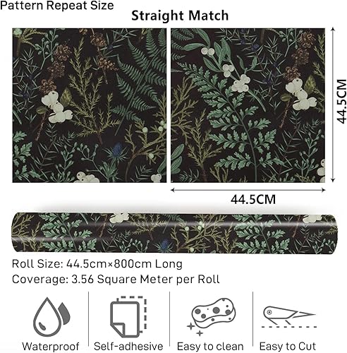 VaryPaper Carta Adesiva Foglie Verdi Tropicali Carta da Parati Floreale Acquerello Fotomurali Vintage Pellicola Autoadesiva Cucina Lavabile Spesso Pellicola Adesiva Nera Opaca Camera da Letto 45cm×3m