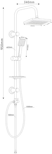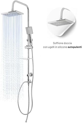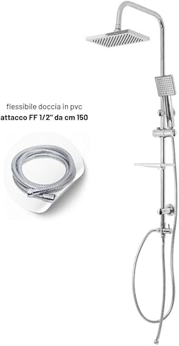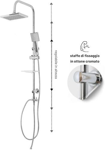 Colonna Doccia Attrezzata Luna Ottone Cromato Soffione Quadro Doccetta Collegabile a Miscelatore Termostatico o Presa d'Acqua a Muro