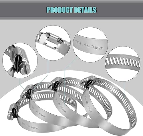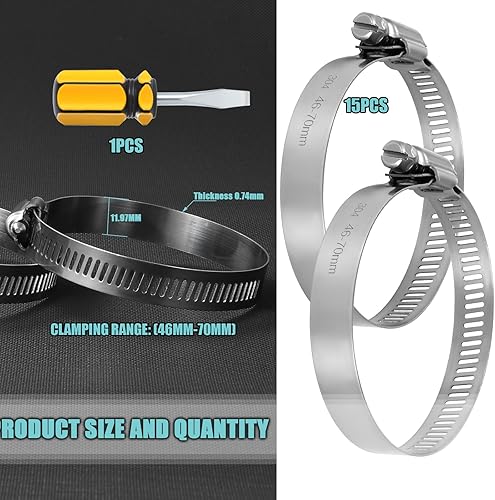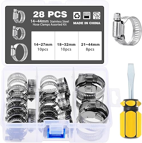 Fascette stringitubo regolabili in acciaio inox, assortimento di morsetti per tubo del carburante, per tubature dell'acqua, per applicazioni idrauliche e meccaniche (28 pezzi, 14-44 mm)