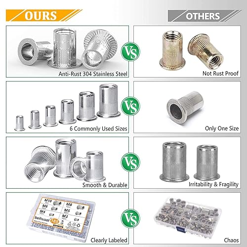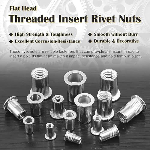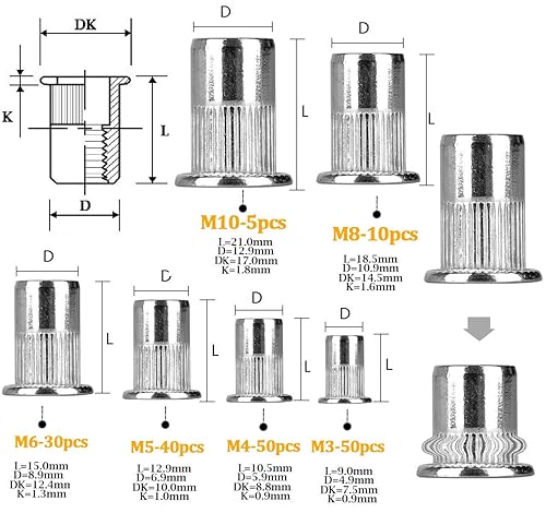 185Pcs Rivetti filettati Inox 304 M3 M4 M5 M6 M8 M10 testa piatta inserti filettati Assortimento kit per decorazioni automobilistiche mobili industriali elettrici