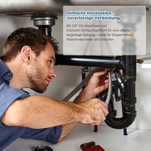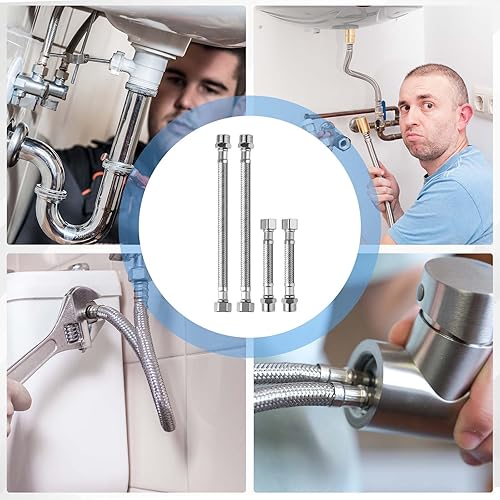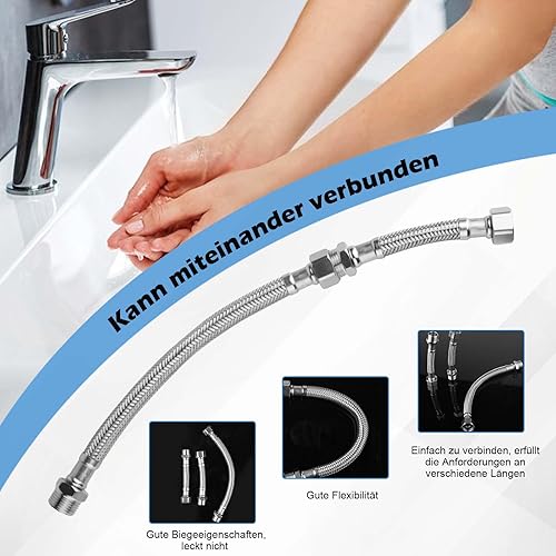 Tubo flessibile 3/8, 4 tubi flessibili in acciaio inox 304 (10 cm e 20 cm), tubo corazzato da 3/8 pollici con raccordo e filettatura esterna, tubo flessibile per rubinetto, lavatrice, soffione doccia