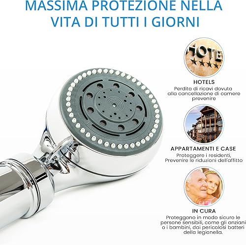 Soffione doccia con filtro antilegionella | Certificazione di protezione immediata contro la legionella | Tecnologia medica | Discreto e sicuro