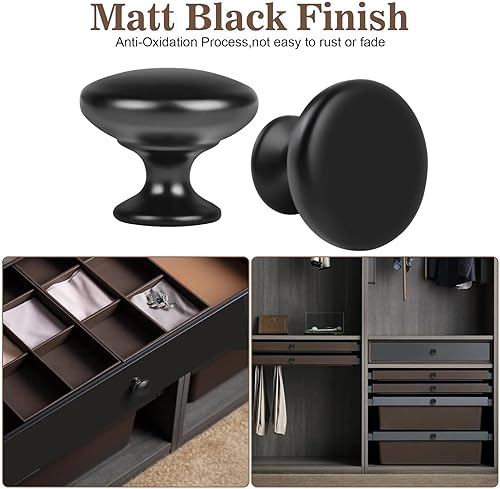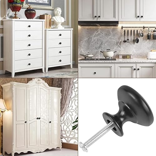4x Pomello rotondo nero per mobile, maniglia per cassetto della cucina, nero opaco, 30 mm