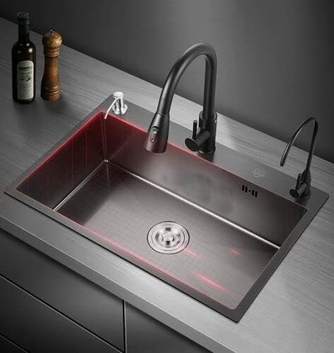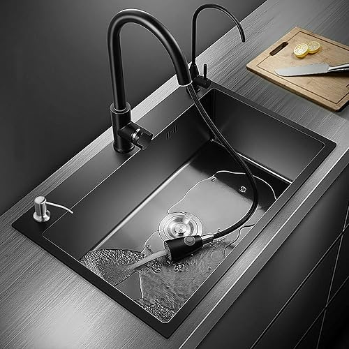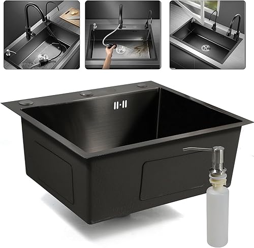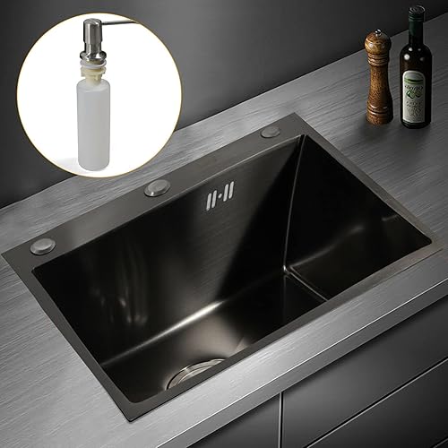 Lavello da cucina in acciaio inox, rettangolare, con foro per rubinetto, 50 x 45 cm, con dispenser per sapone, sifone