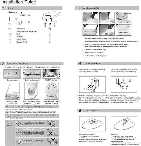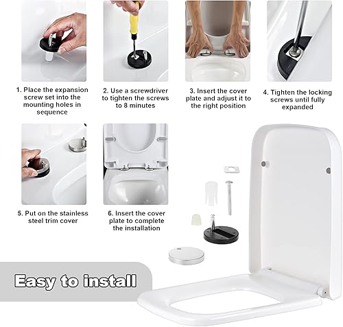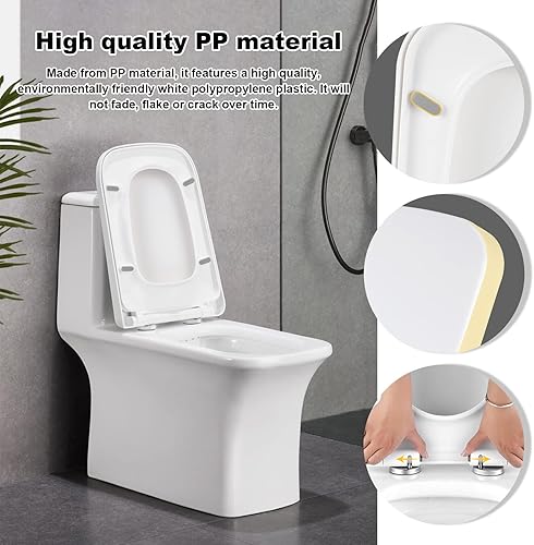 Sedile WC con Chiusura Morbida a Sgancio Rapido, Sedili WC con Chiusura Lenta e Cerniere a Sgancio Rapido per una Facile Pulizia, Fissaggio Più Solido, a Forma di Quadrata