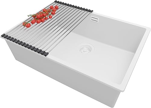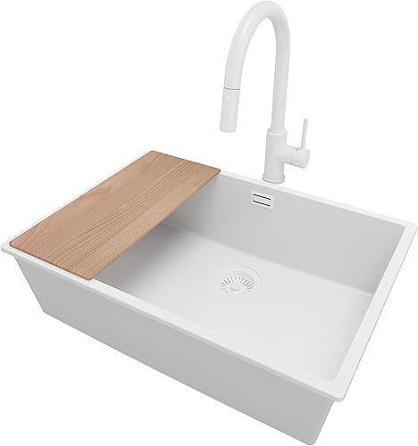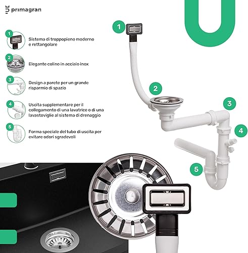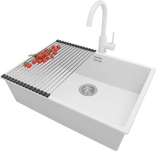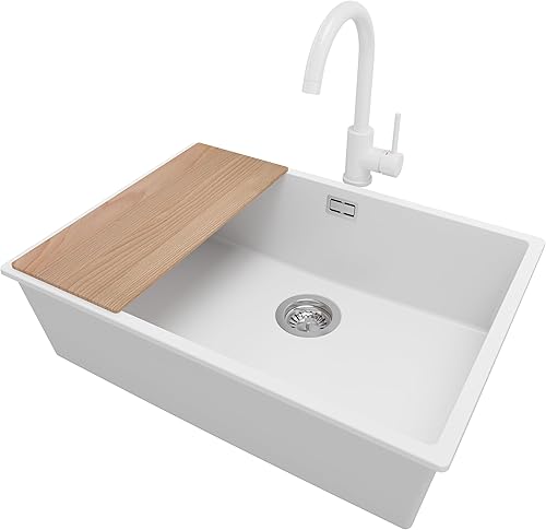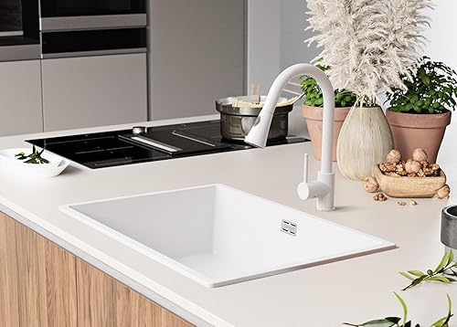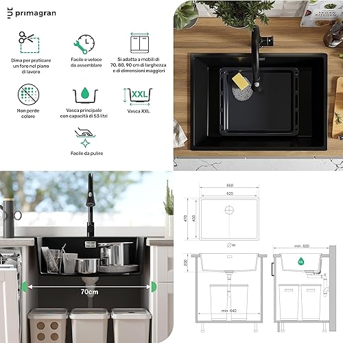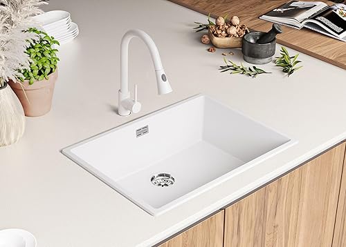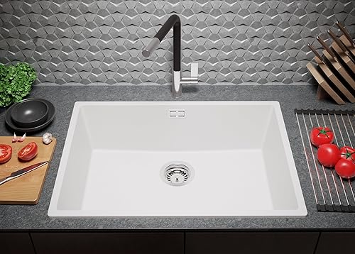 Lavello da Cucina Bianco 66x47cm, Lavandino da Cucina a 1 vasca + Sifone Classico, Lavabo da Cucina Incasso al mobile 70cm - London Slim di Primagran