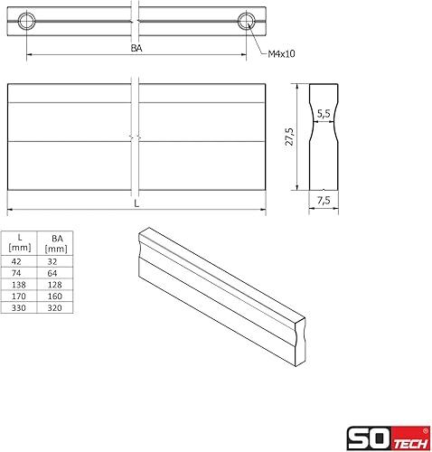 Maniglia per mobili LONA BA 320 mm maniglia in alluminio anodizzato nero profilo maniglia per cassetto