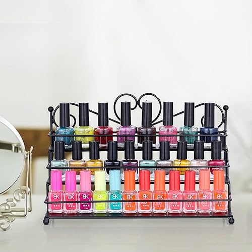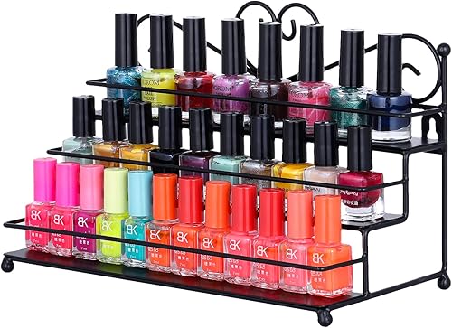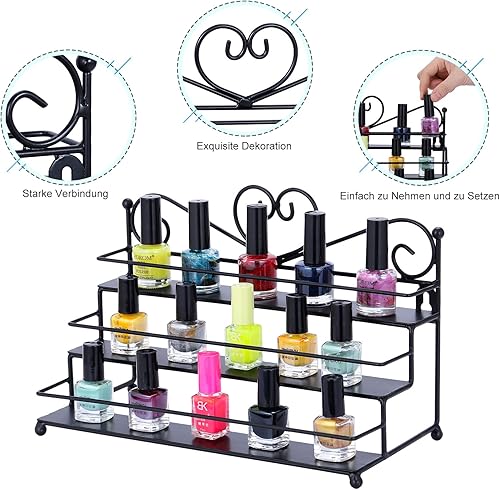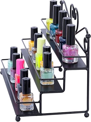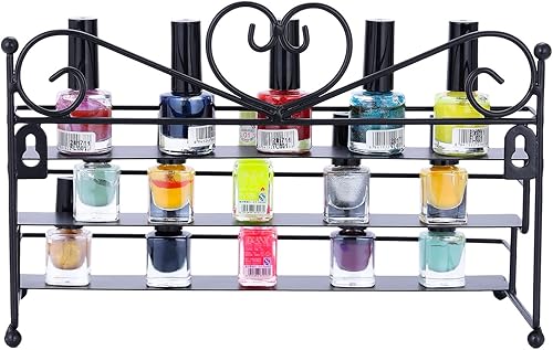 FullBerg - Scaffale in metallo per riporre smalti, con 3 ripiani in metallo, regalo di san Valentino, Nero