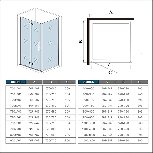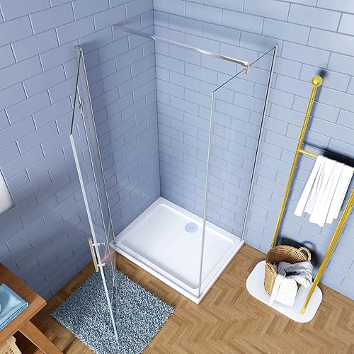 195cm Box Doccia Angolare Porta Battente Pieghevole con Parete Fissa 70x90cm in Vetro Temperato 6 mm Anticalcare Barra Stabilizzatrice da 90 cm Cromo Lucido