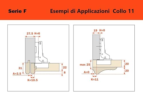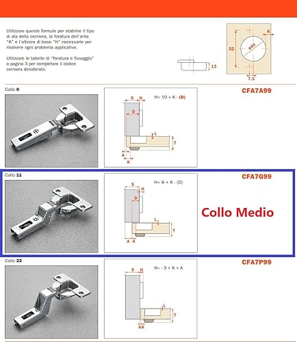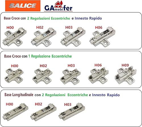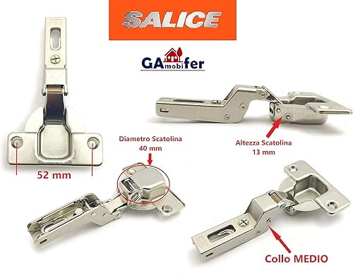 Cerniera SALICE per Ante di Forte Spessore, con Angolo di Apertura 94°, per Foro Alloggio Scatolina con Diametro 40 mm. (MOLLA SCATTO, COLLO ALTO)