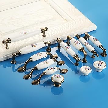10 maniglie vintage per armadi, in ceramica, stile retrò, distanza tra i fori 96 mm