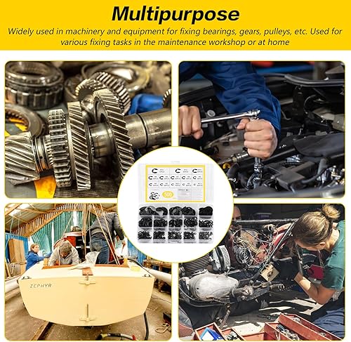 Set di 500 anelli di tenuta esterni, anelli di fissaggio esterni, anelli di sicurezza per apertura a scatto, clip di fissaggio interne esterne in acciaio al carbonio nero, M1.2-M15