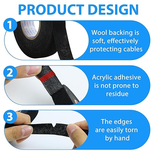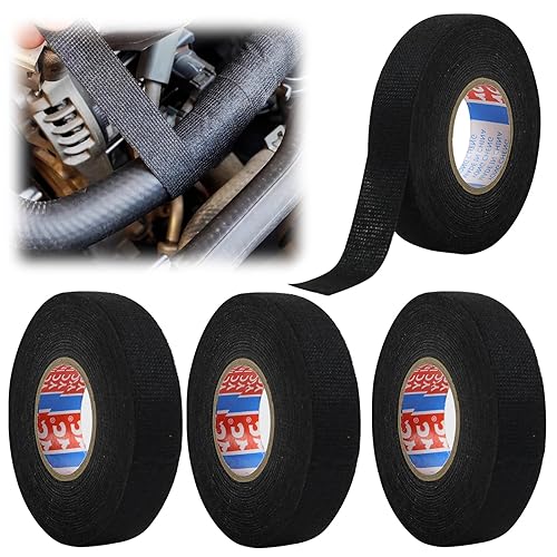 4 pezzi Nastro in tessuto per auto, Nastro Adesivo 19 mm x 15 m, Nastro Isolante Nero, Nastro Tessile Autoadesivo per Cablaggi, Motocicletta per la Copertura dei Cablaggi