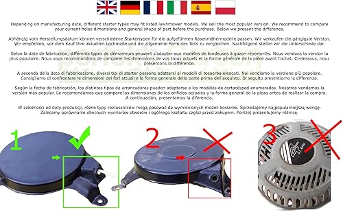 Avviamento a strappo per tosaerba compatibile con Scheppach MS197-51-3W, MS226-53 SE, LM173-51S