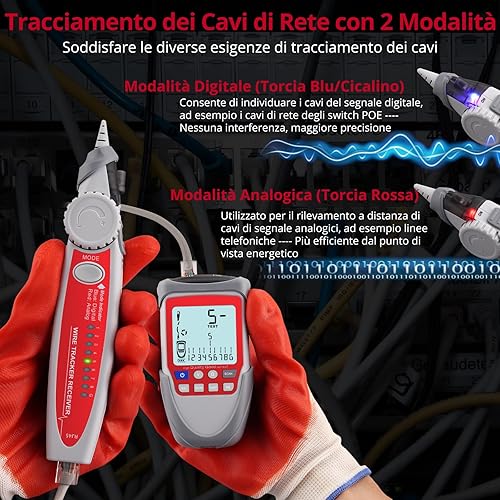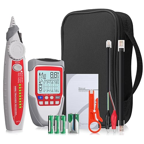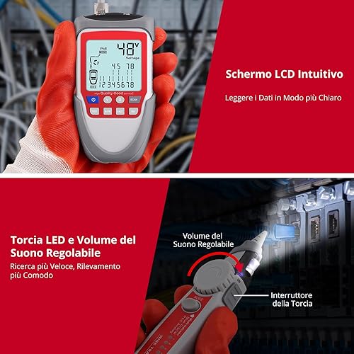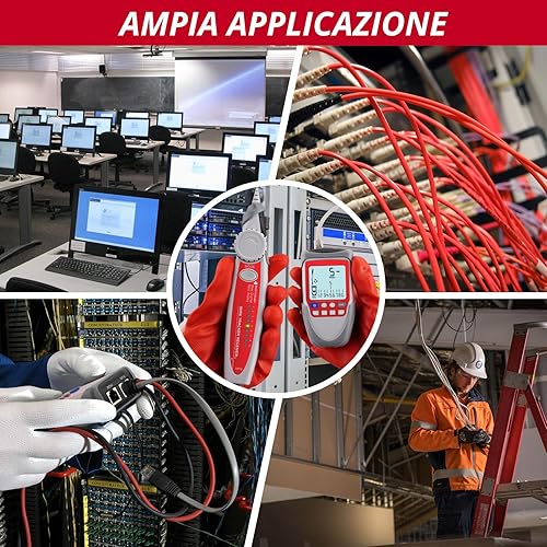 XUNTOP Tester per Cavi di Rete LCD Rilevatore di Linea Continuità Tensione della Batteria Verifica Polarità Test POE Tester Avanzato Multifunzione per LAN CAT5 CAT6 Tracker
