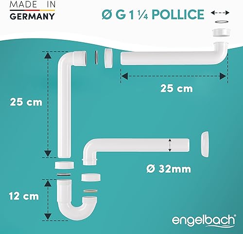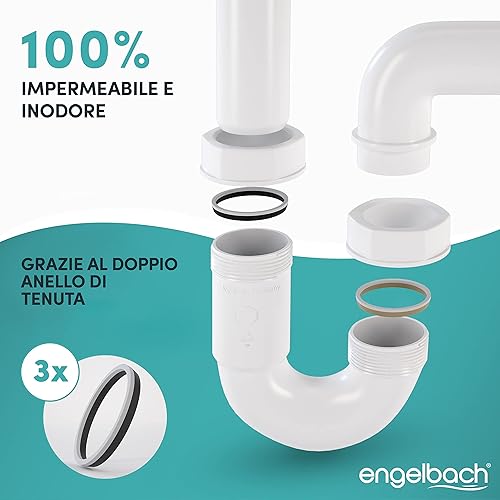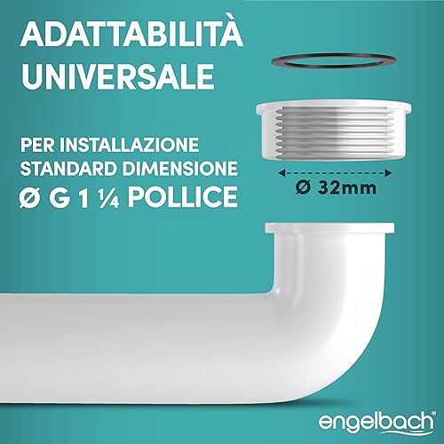 Sifone lavabo bagno salvaspazio - 1 1/4' x 32mm - Regolabile e a prova di odori - Made in Germany