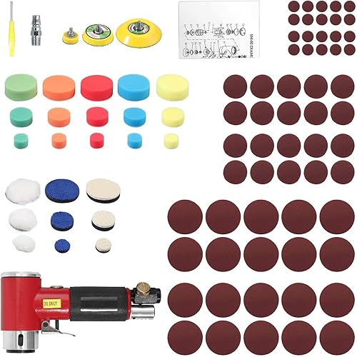 EYPINS Mini Lucidatrice, Lucidatrice ad Aria Compressa con Carte Vetrata, Spugne di Lucidatura, Tamponi per Smerigliatura e Lucidatura