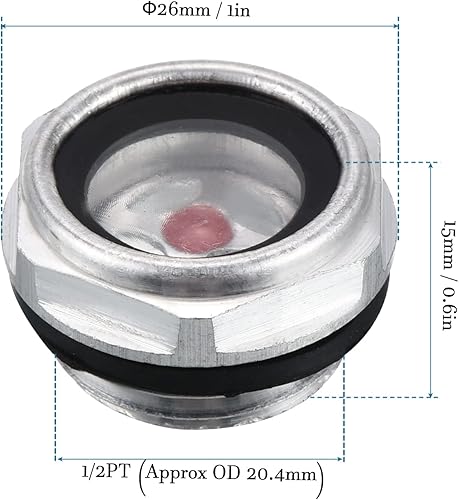 1/2PT Maschio Filettato Aria Compressore Olio Livello Vetro Raccordi x 1 Pezzo Trasparente Olio Sight Vetro con O-ring per Olio Lubrificato Compressori