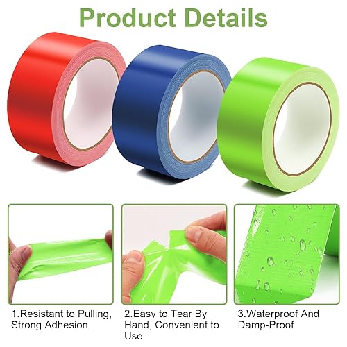 3 Rotoli Nastro Adesivo Telato, Strappabile Nastro Telato Gaffa Tape 50 mm x 10 m Duct Tape Extra Forte Resistente Impermeabile, Per Riparazioni, Fissaggio, Imballaggio, Marcatura e Sigillatura