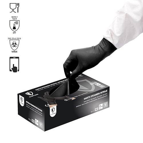 Guanti monouso neri in nitrile, confezione da 100 guanti in nitrile, taglia XS (molto piccola), senza lattice, durevoli e multiuso, protezione contro i prodotti chimici