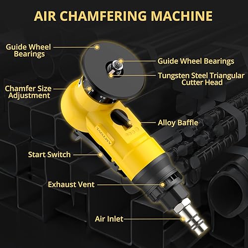 AMTOVL Macchina per Smussatura Pneumatica Manuale 30000 rpm 4 Velocità Regolabili Maniglia a una Mano Kit di Sbavatura ad Angolo con 20 Lame 4 Cuscinetti per Sbavatura in Metallo Sbavatura del Legno